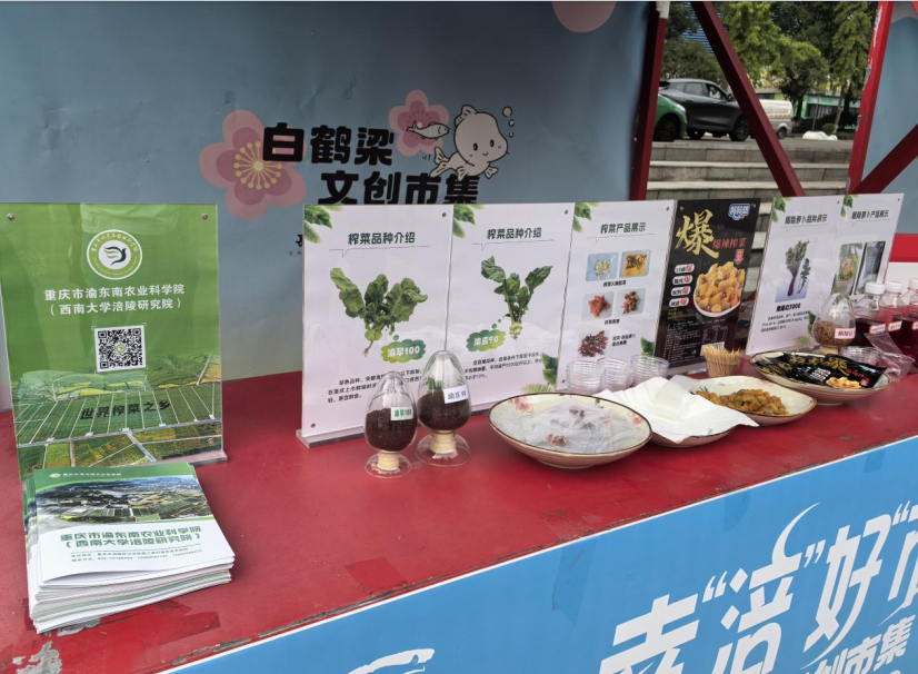 9月18日,我院榨菜新品种、青菜头新产品、胭脂萝卜新品种等科技成果参加2025长江文明论坛嘉宾探访白鹤梁文创集市展览,得到市委宣传部副部长、市广播电视局局长严兵,区委宣传部部长吴辉等巡展领导和嘉宾的一致赞许。